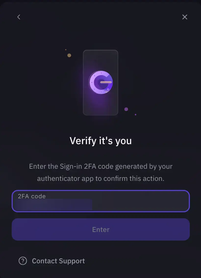 4. Bevestig met je 2FA als daarom gevraagd wordt. Vervolgens wordt de API-sleutel en API-secret getoond.