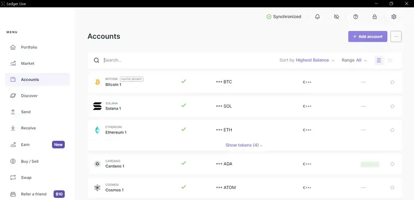 1. Open de Ledger Live software en log in.