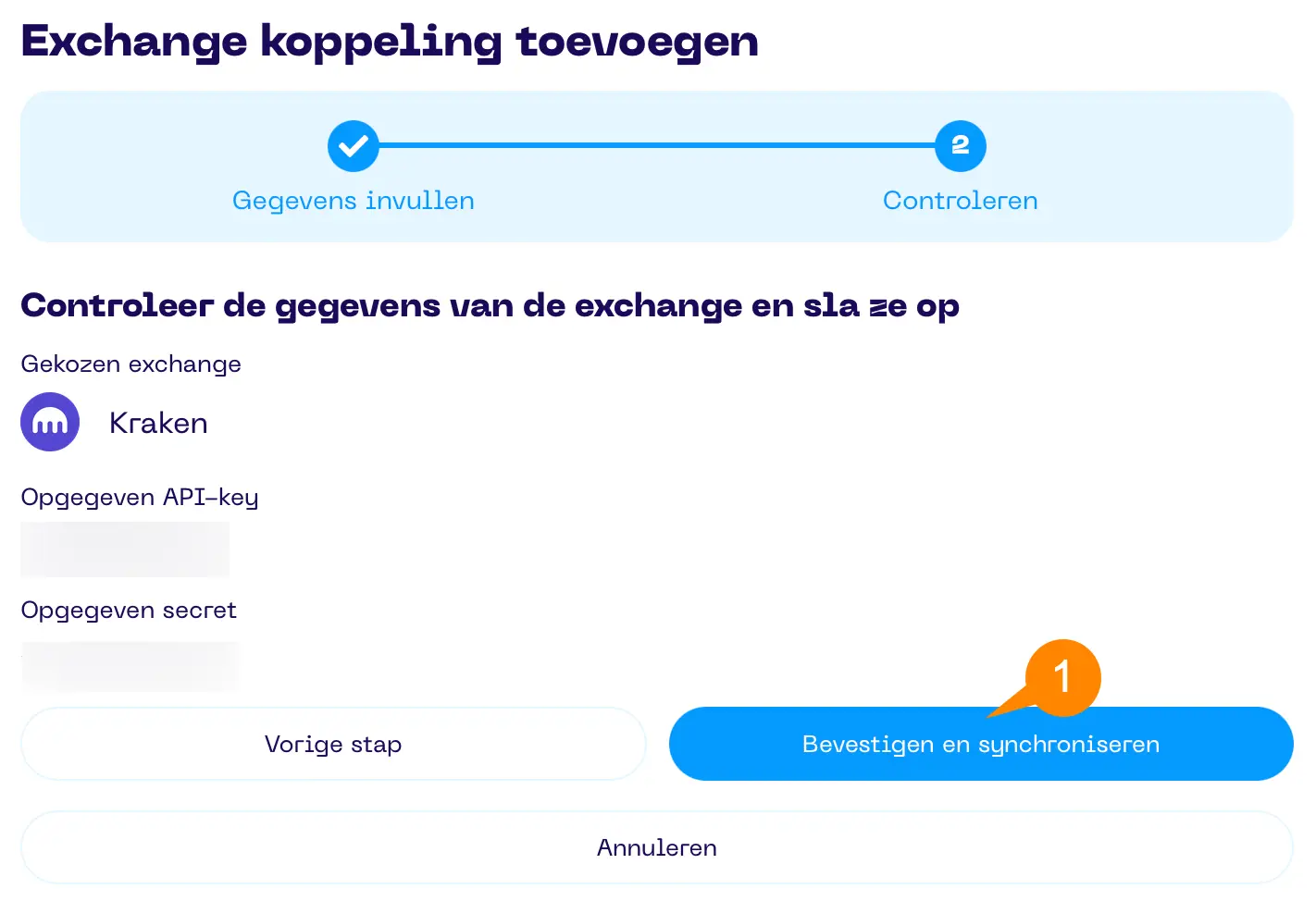 Het synchroniseren van je bezit en transacties (als je abonnement dit toestaat) start automatisch na het koppelen van een exchange. Alle crypto die je bezit en de volledige transactiegeschiedenis (voor zover de exchange dit beschikbaar stelt) worden gesynchroniseerd. Details over het synchroniseren van de volledige transactiegeschiedenis lees je in de handleiding van de desbetreffende exchange.